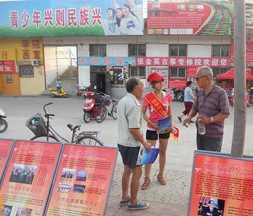 本次宣传采用以图配文的展板形式,通过宣传展板展示了党九十周年来的光辉历程。与此同时,社会实践团队在西北大操场发放宣传单,并为行人展示此活动的内容与意义,图文并茂的宣传形式,吸引了众多行人纷纷停车驻足观看。
