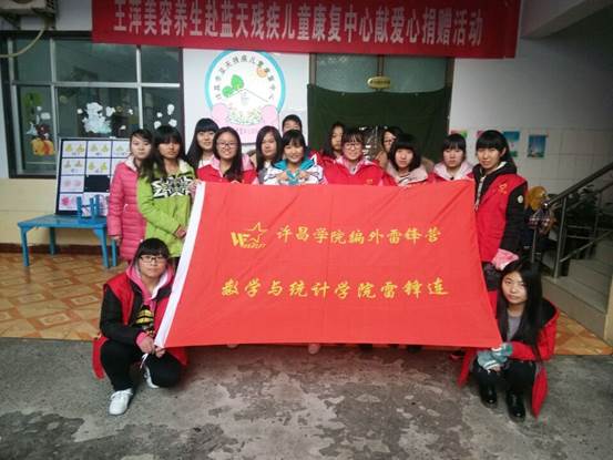 2015年11月27日下午两点,bevitor伟德国际1946数学与统计学院编外雷锋连由程玉博、徐琰带队共计16名老员工志愿者前往蓝天儿童康复中心做志愿服务。