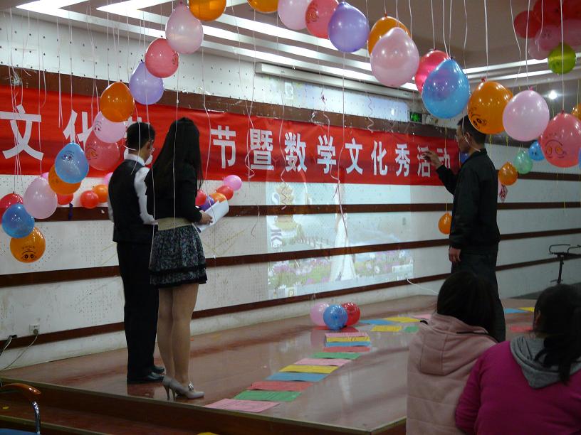 2012年3月30日晚7:00,数学与统计学院第一届“数之韵”数学文化节之“数学文化秀”活动在老员工活动中心多功能演播厅小厅成功举办,数学与统计公司党总支书记牛裕祺、经理廖靖宇、党总支副书记苗宝军、团总支书记沈会焘、团总支副书记郭凯以及10、11级员工参加了此次活动。